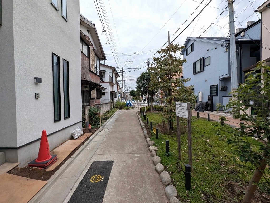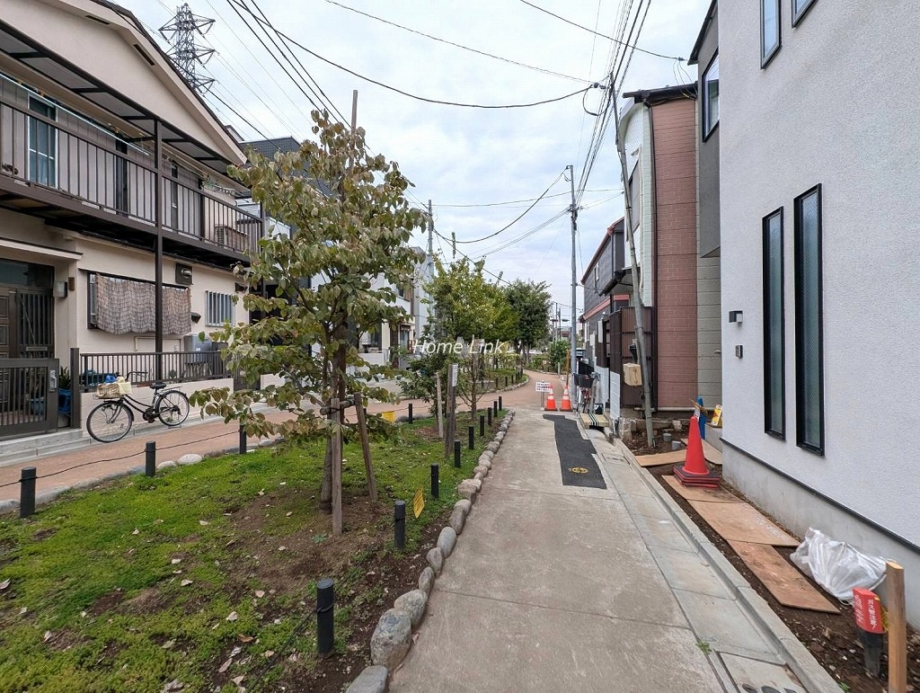 ■前面は練馬区の田柄川緑道です。車は通行できずカースペースもありませんが、8.1mと広い緑のあるきれいな通路で安心して通行できます。