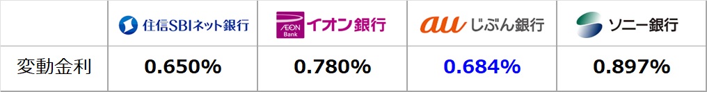 少し前まではネット銀行の変動金利が金利を争っていましたが、このところは都市銀行の変動金利の方が低くなるケースが多くなってきました。ただしネット銀行には団体信用生命保険が充実している場合もありますので、金利のみならずその中身も踏まえてご判断いただくとよいと思います。