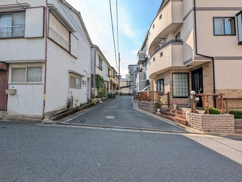 南が道路に面する陽当たりのよい土地で、前面道路は行き止まりのため基本的に住人の方々しか入ってこない静かで安心な道路です。位置指定道路(私道)で持分を持ちますが、都市ガスや本下水は整備済みで舗装もされています。
