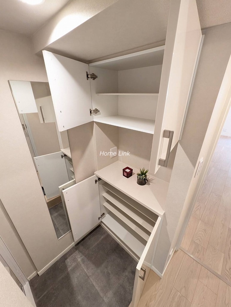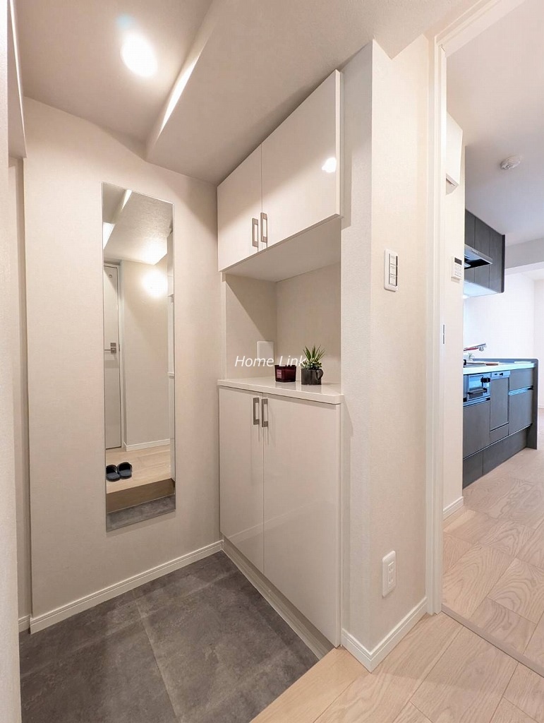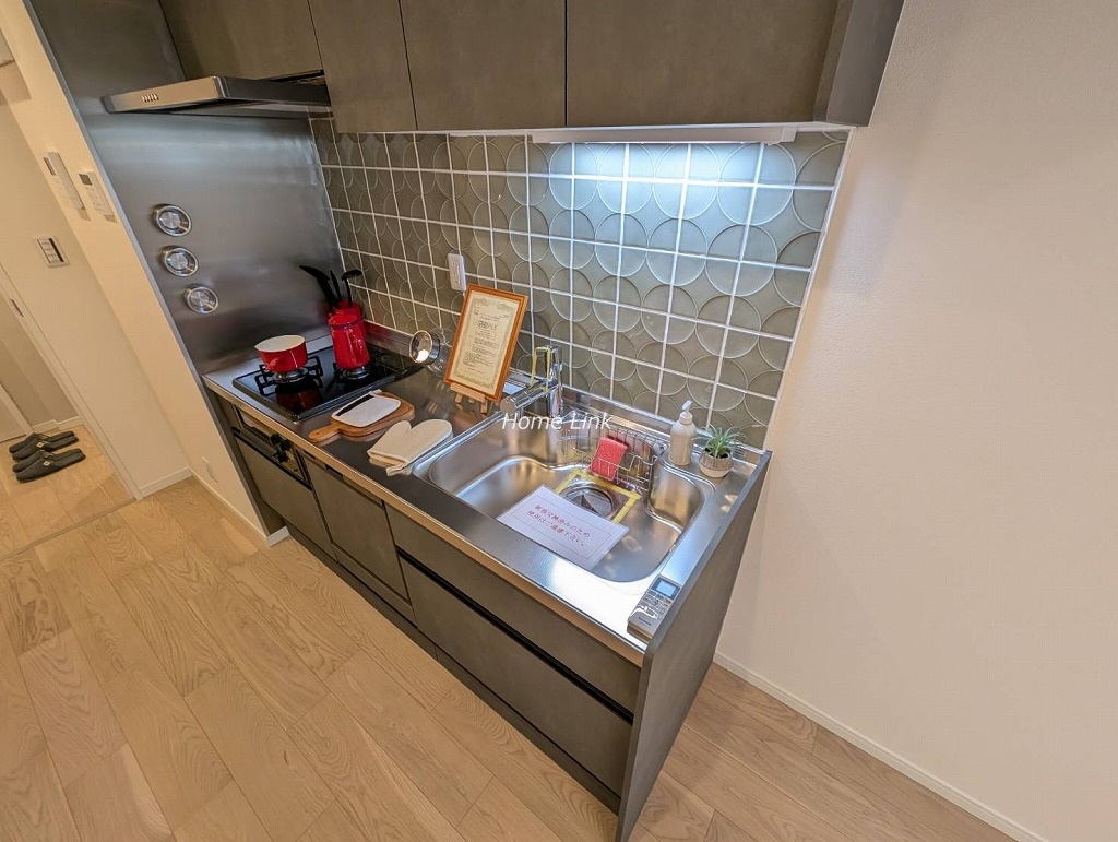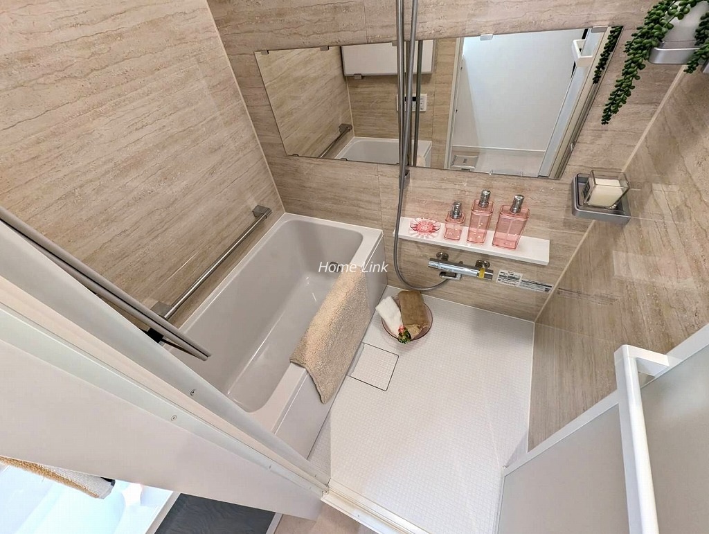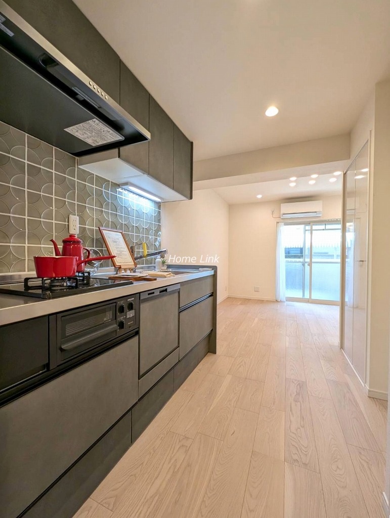 フローリング(天然木)、建具、シューズボックス、システムキッチン(1800、食器洗浄機、浄水器)、ユニットバス(1014、追焚)、浴室乾燥機、洗面化粧台(750)、シャワートイレ、天井壁クロス、フロアタイル、給湯器、装飾タイル、室内給排水管、エアコン先行配管、照明他(令和7年8月下旬完成)