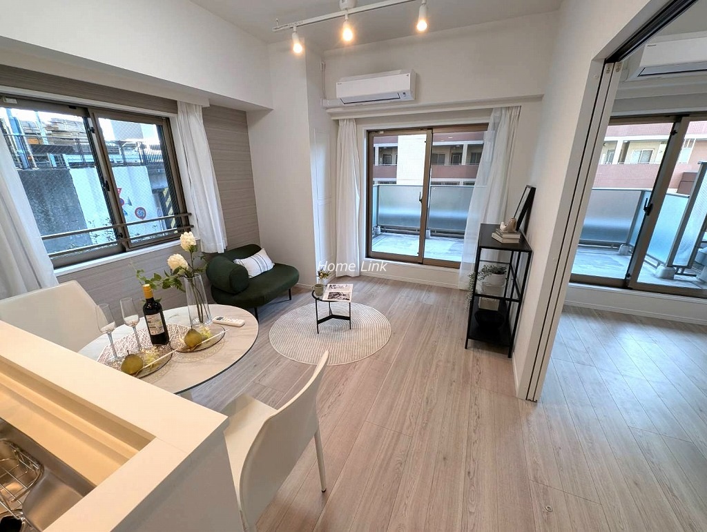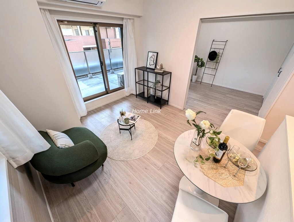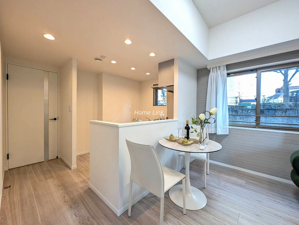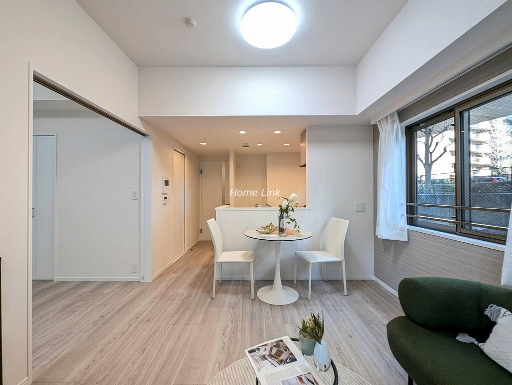 1階部分、南・東向きルーフバルコニー付き角住戸です。内装も水廻りの設備も一新、綺麗になったお部屋ですぐ新生活を始めることができます。リビングと洋室を開け放って約17.4帖の広いLDKとしても利用できます。