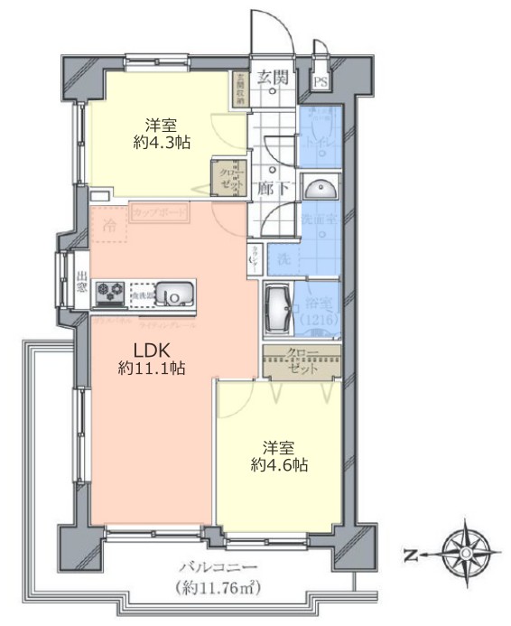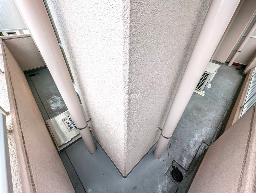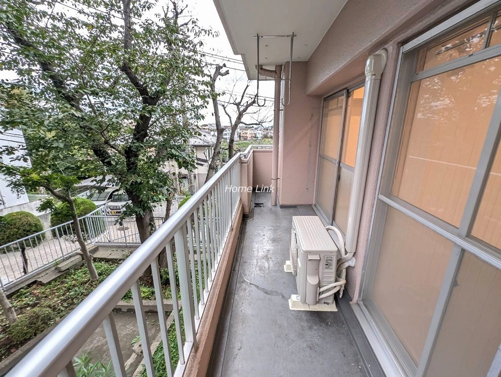 お部屋は2階の角部屋で、リビングはL字型バルコニーに囲まれています。