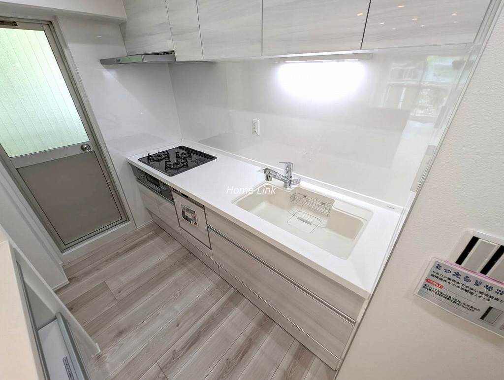 システムキッチン(食器洗浄機)、浴室(追焚、浴室乾燥機)、フローリング、洗面化粧台、トイレ(ウォシュレット)、スイッチ、コンセント、防水パン、クリーニング、給湯器、下駄箱、照明、建具、クロス、クッションフロア(令和8年3月末完成)