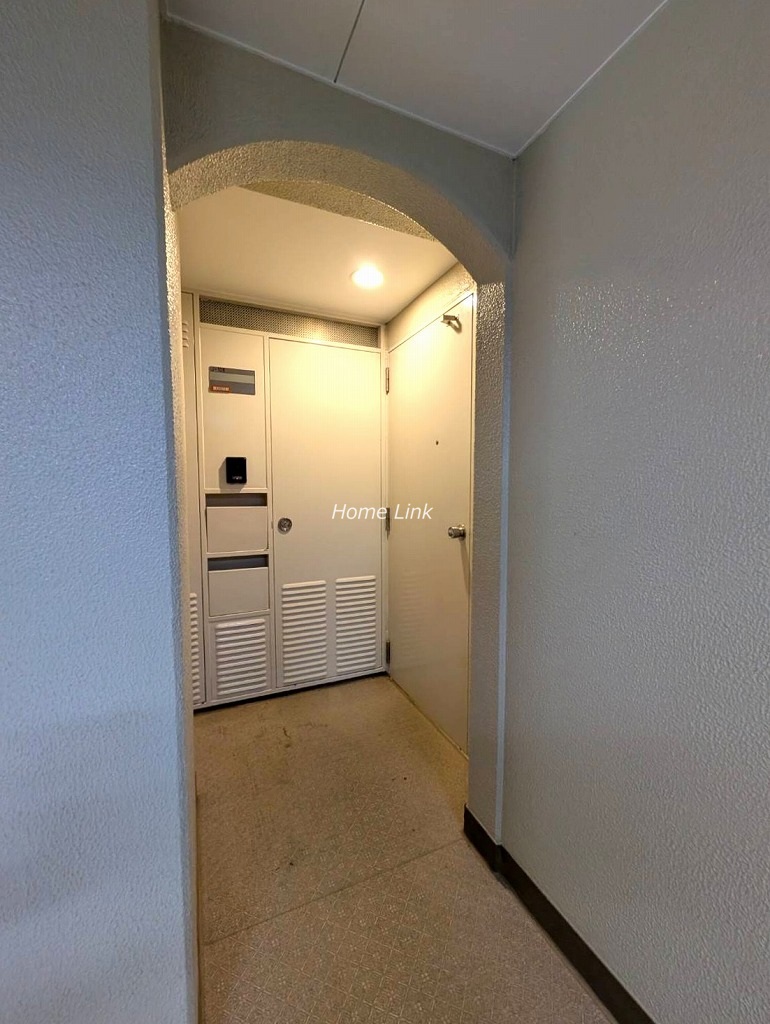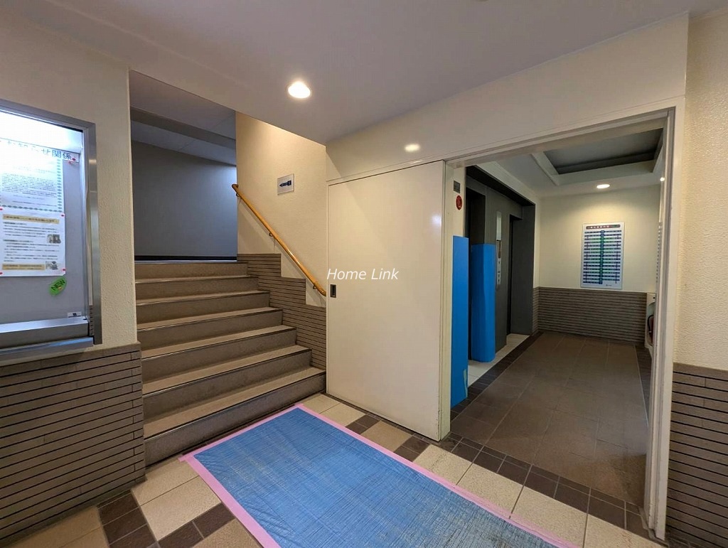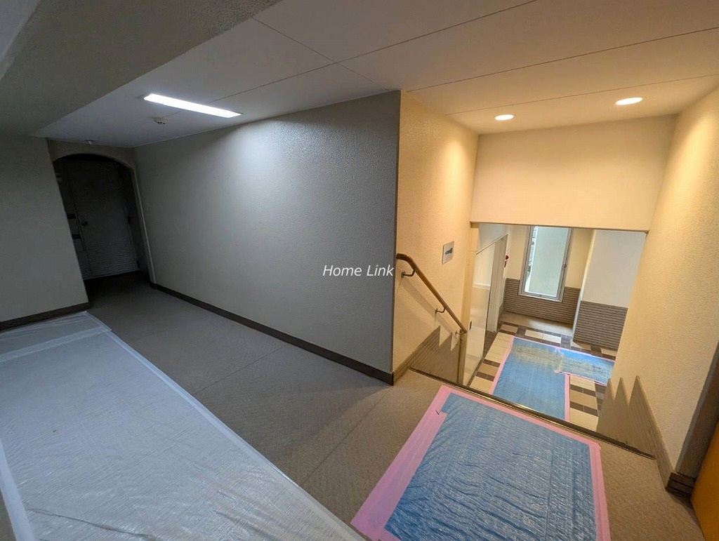 今回のお部屋は9階でエレベーター降り、ワンフロア階段でのアクセスとなります。高層階のため陽当りや眺望も良好です。