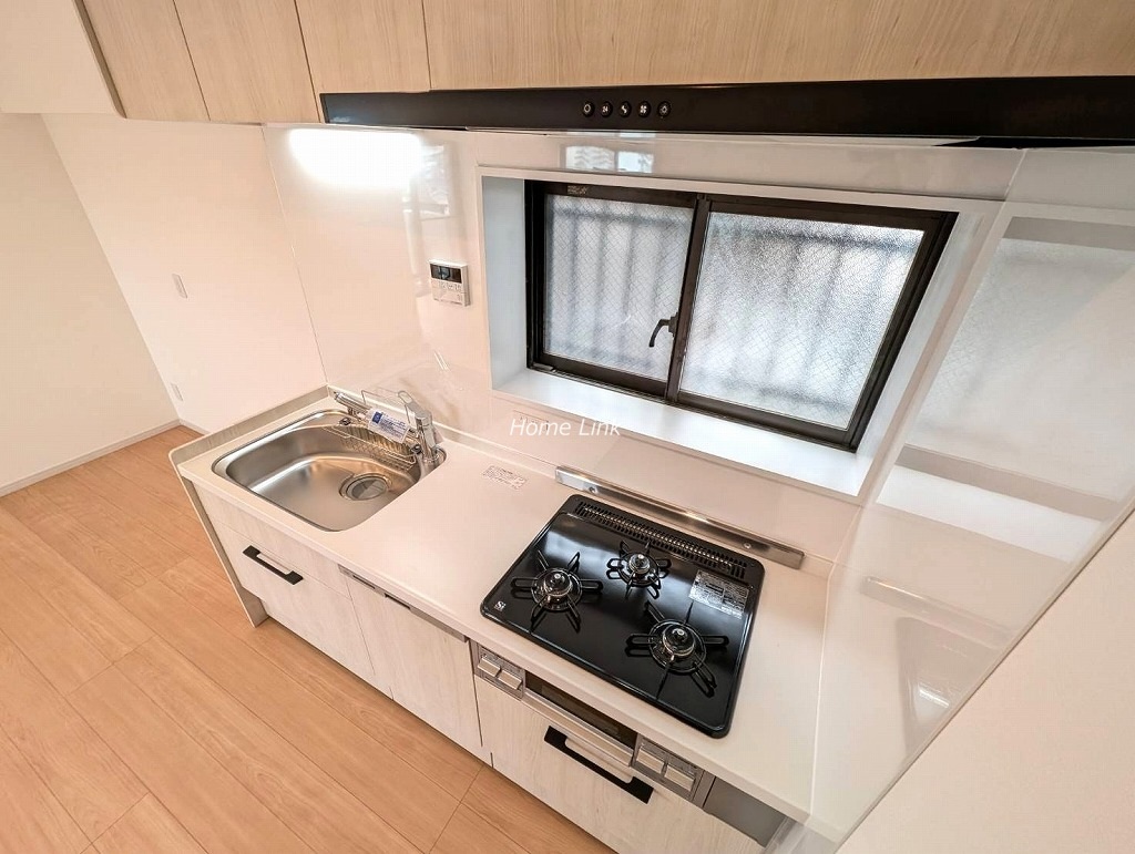 窓があり明るく換気しやすいキッチン