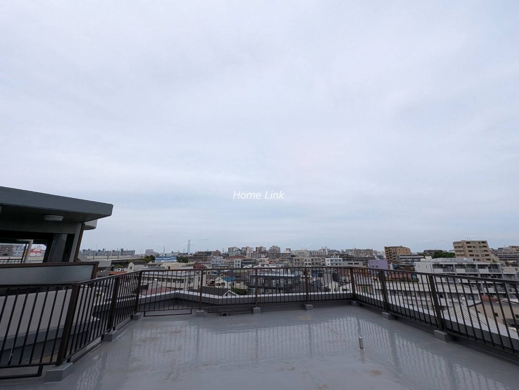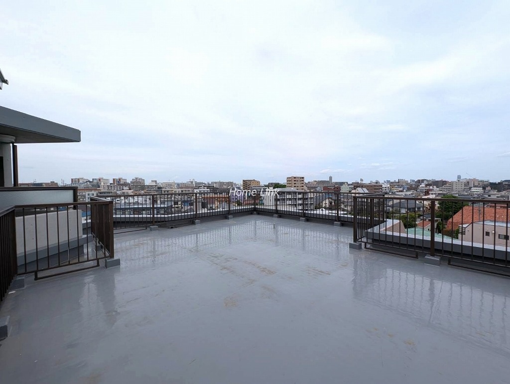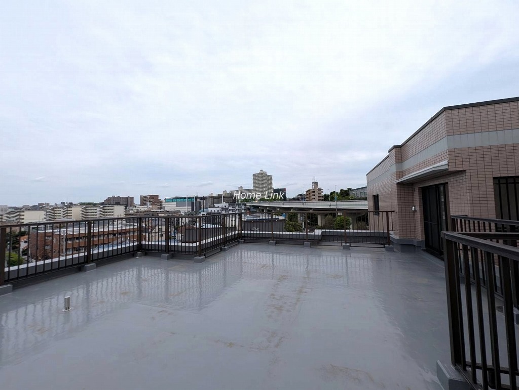 玄関側の洋室から北東側へ伸びるとても広々したルーフバルコニーでした。周囲には高い建物がなく外からの目線も気にすることなく、開放的に使える空間です。
