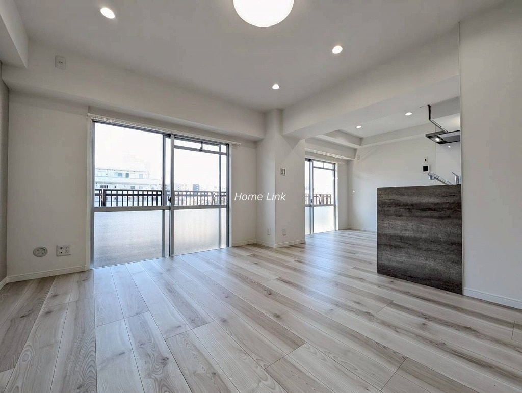 室内はリノベーション済み。ぐるりとL字型バルコニーに囲まれた陽当たりに恵まれ風通しの良い室内です。