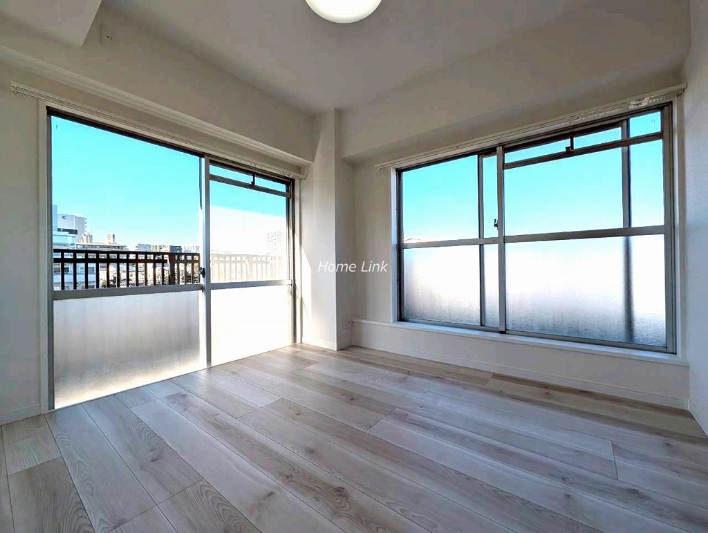 お部屋は7階建ての6階部分です。3室が西向きバルコニーに面した明るく眺望のいい住戸です。室内はリノベーション済み、水廻りの設備も一新。