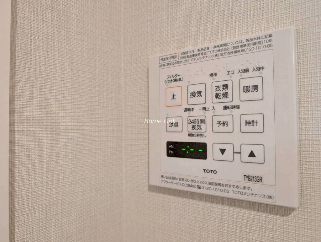 洗濯物を乾かしたり、浴室内を暖房し快適なバスタイムを過ごせる浴室乾燥機、追い焚き機能付き。