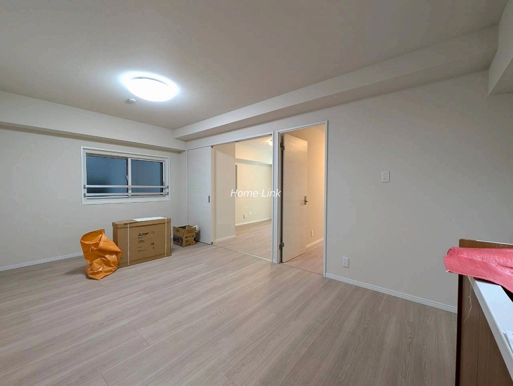お部屋は7階部分、南西向き住戸の1SLDKですが、サービスルームは6.5帖の広さがありウォークインクローゼットも備わって居室と同じにように利用できます。室内はリノベーション済み。エアコンも1台付きで全室エアコン設置可能です。
