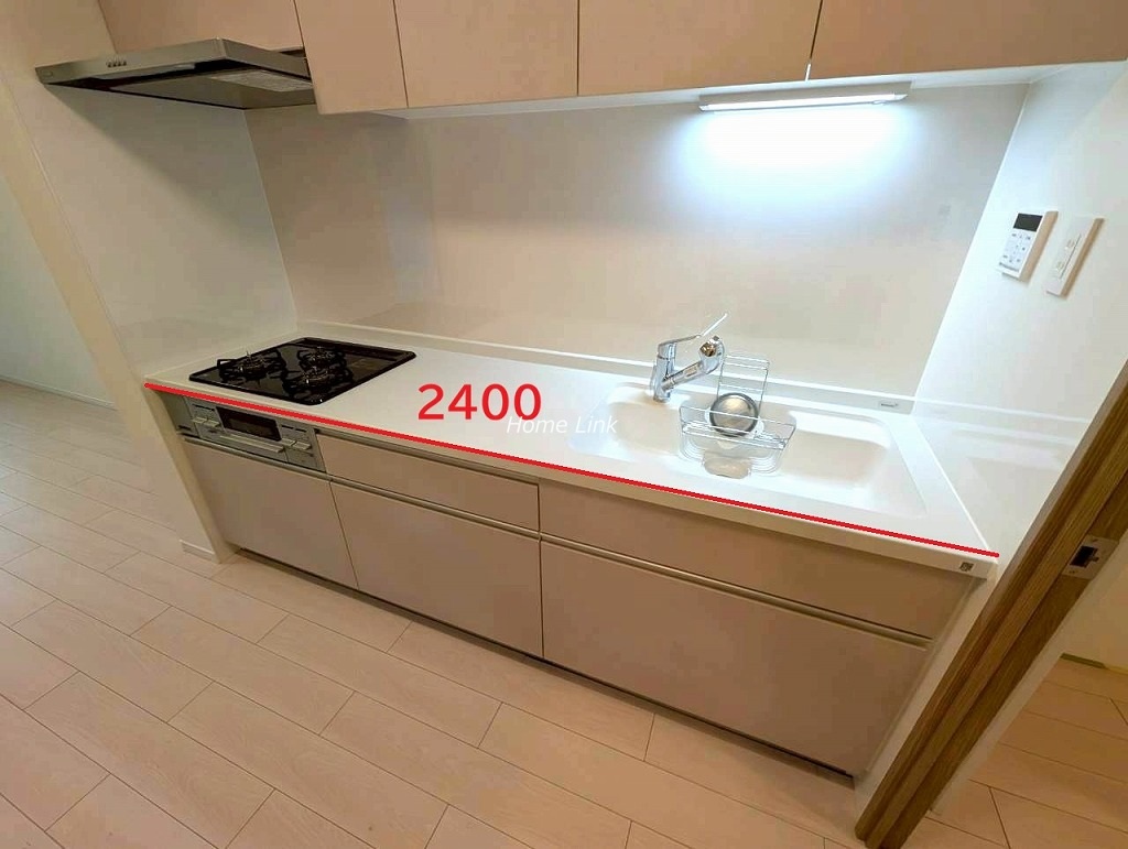 キッチン(システムキッチン・浄水器付き・W2400)、浴室(ユニットバス・換気乾燥機付・1116)、洗面室(洗面化粧台・洗濯用水栓・洗濯パン)、トイレ(タンクレス便器)、その他(給湯器・照明器具・建具・スイッチコンセント)、フローリング(LDK・洋室・廊下)、フロアタイル(玄関・洗面室・トイレ)、壁・天井クロス、ハウスクリーニング(令和8年2月6日完成)