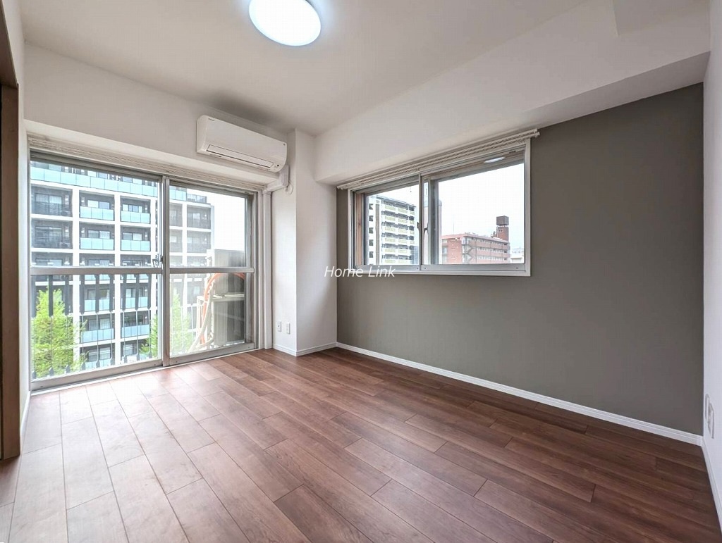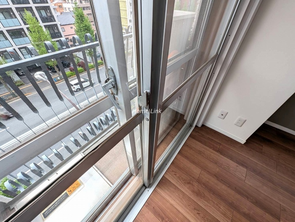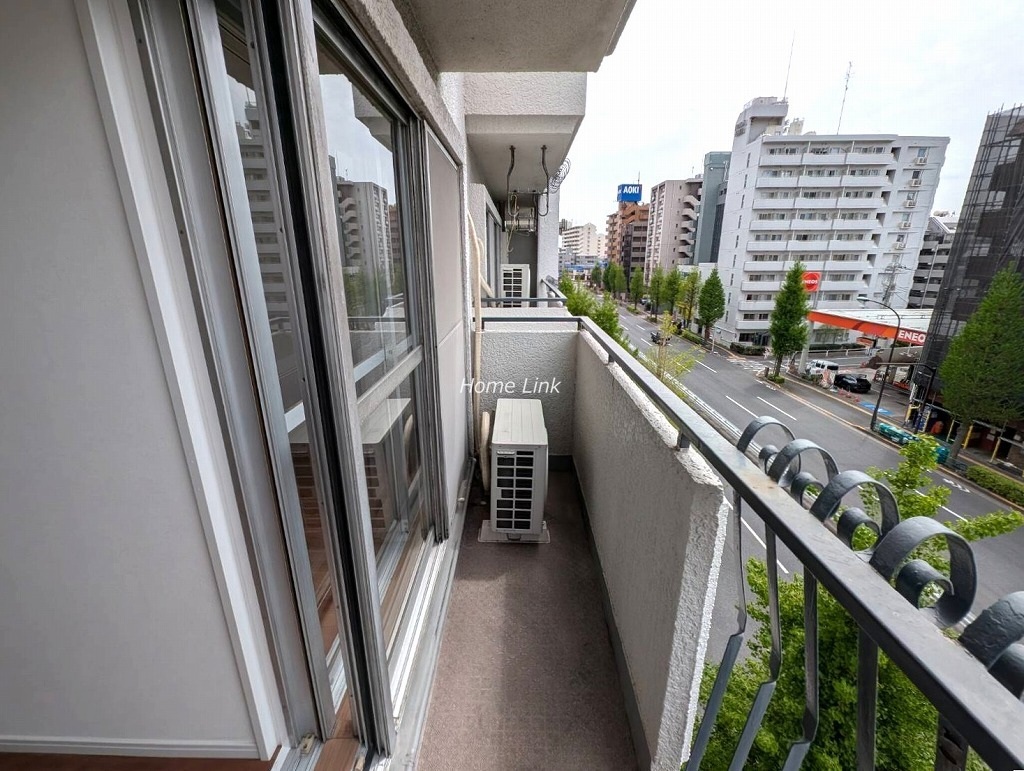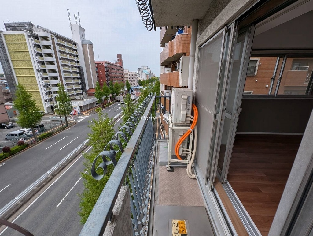 5階の南西角部屋です。バルコニーは南向きで高島通りに面するため陽当たりがとてもよいですが、通りの交通量は多いです。角部屋のため全6ヵ所の窓がありますがすべて二重サッシで防音対策がされています。閉めるととても静かになりますが、騒音レベルは現地でのチェックポイントです。