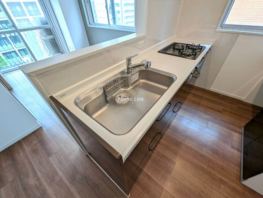 室内はリフォームによって開放感のあるキッチンへ様変わりしています。リビングが見渡せ、窓もあって明るいので、キッチンに立っている時間も楽しめるお部屋です。