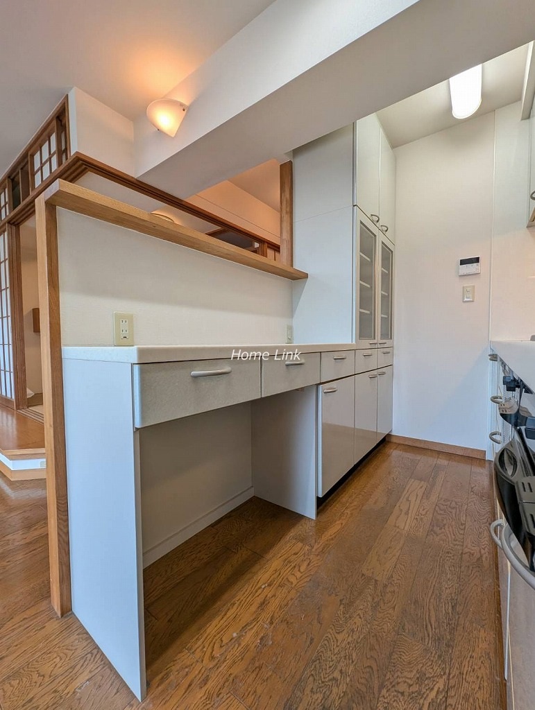 新耐震基準施工のマンションでお部屋はリフォーム履歴があります。リビングと洋室には床暖房があり、造り付けの食器棚やデスクなどもあります。