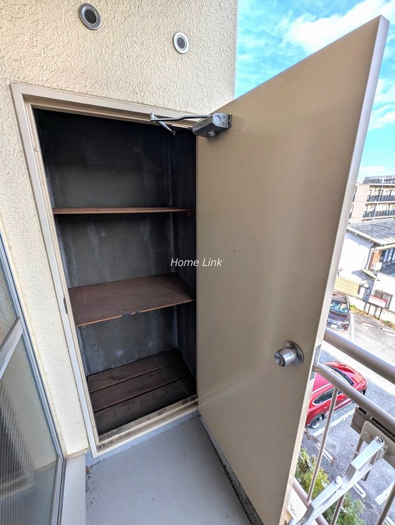 またバルコニーにも物入があり、収納スペースが充実した住まいです。