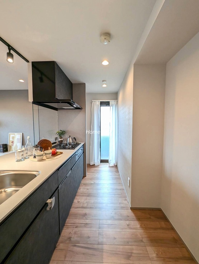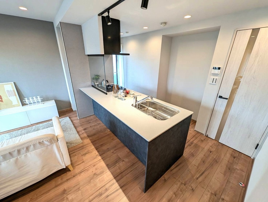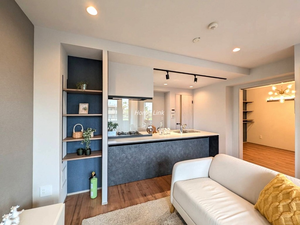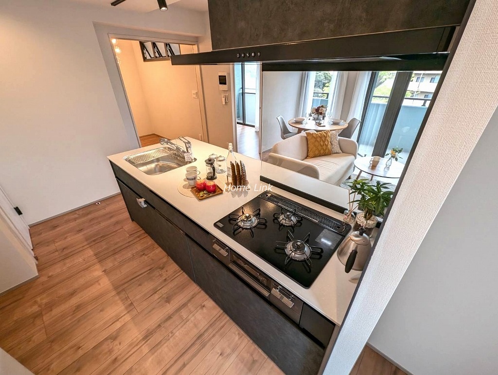 リノベーション済み。対面式のオープンキッチンは幅2.4m。