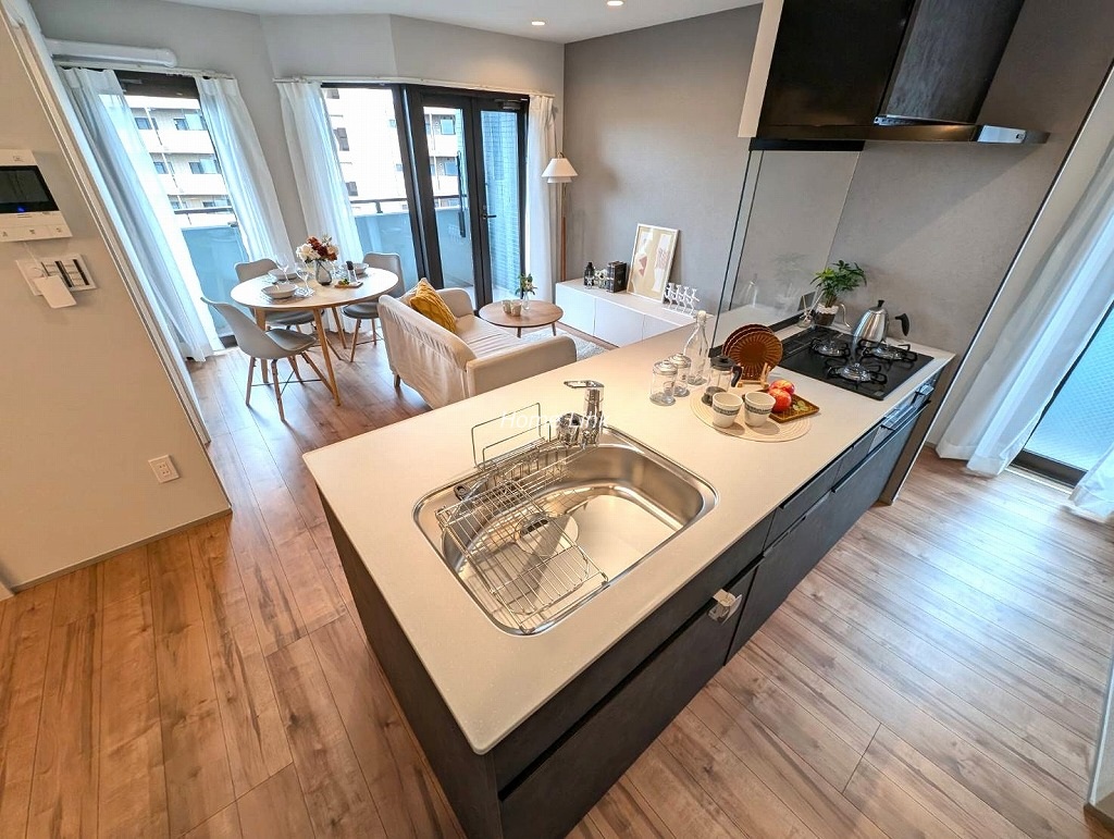 キッチンはフラット対面でリビングを見渡しながらお料理ができます。食洗器も組み込まれておりお片付けも軽減できます。