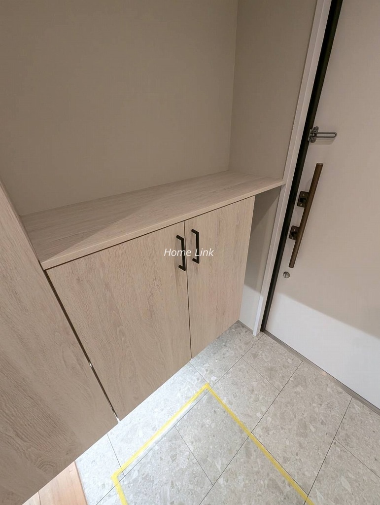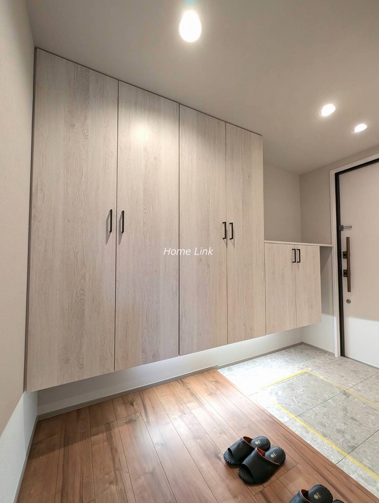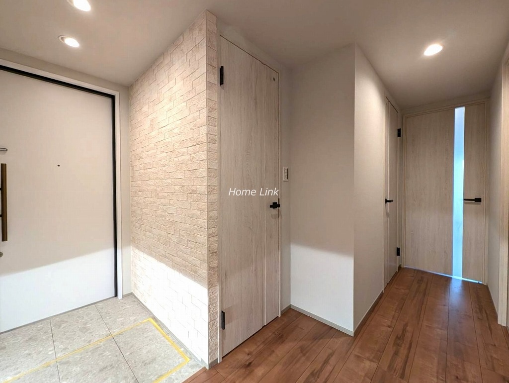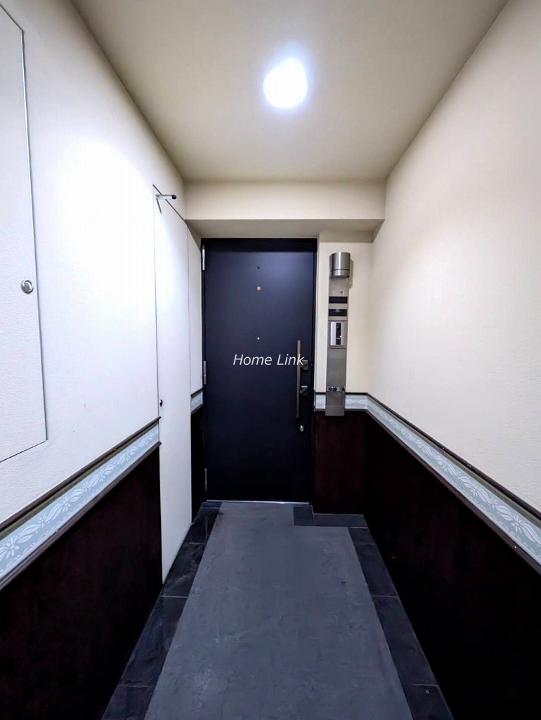 お部屋の階までエレベーターで上がるり、各住戸の玄関までもカーペット敷きの内廊下です。通常、玄関ドアの隣には水道メーターなどがありますが、扉で隠されており意匠設計にもこだわりが感じられる上質な造りです。