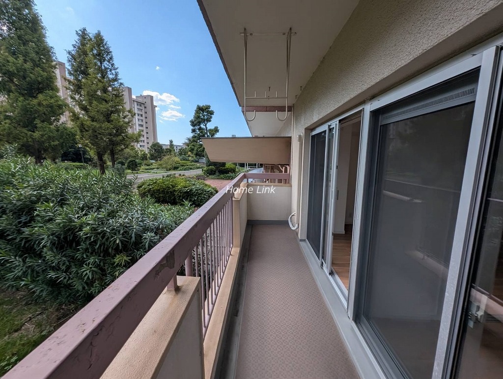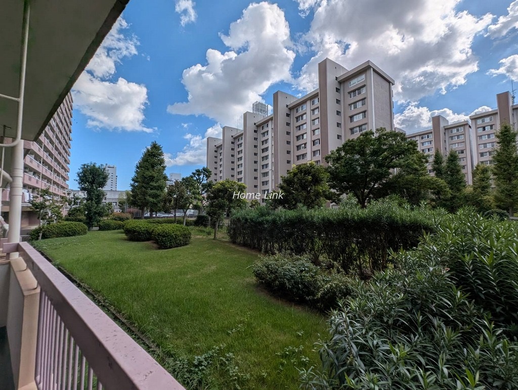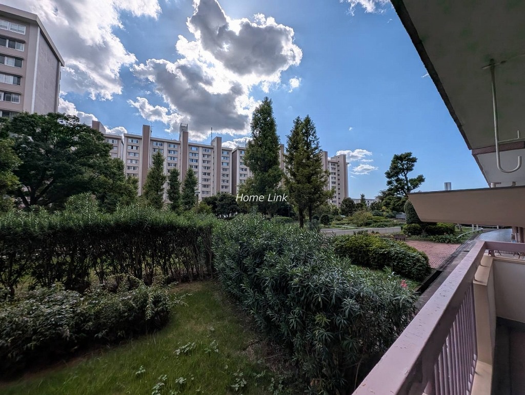 東西横一列に住戸は配置されています。南側には敷地内の公園や緑地が広がり、その先には第3住宅がありますが、当時ながらの贅沢な空間の使い方をしており圧迫感がありません。