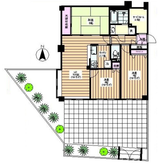 | 特色 | エントランスにスロープ有、公園近く(徒歩5分以内)、新耐震基準マンション、オートロック、宅配ボックス、セキュリティ充実、駐車場、南向き、和室、専用庭、角部屋、カウンターキッチン |