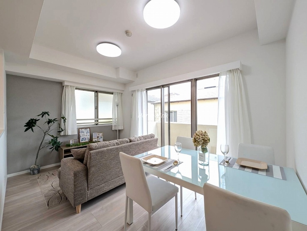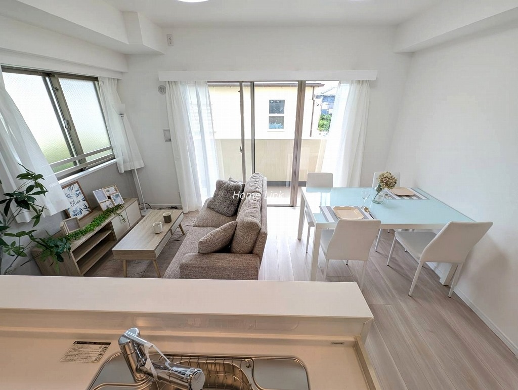 2階、南向き住戸です。内装も水廻りの設備もリノベーションで一新、専有部の給排水管も交換しています。