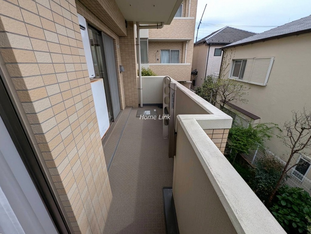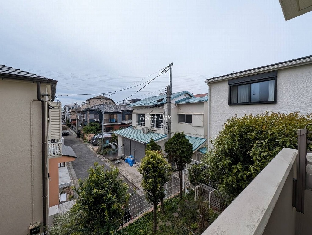 バルコニーの向かいは2階建ての一戸建てで一部は道路もあります。空が見えて陽当たりも問題ありません。