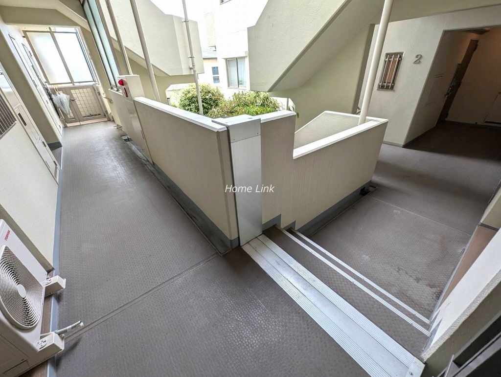 2階の西北の角部屋です。エレベーターを降りてから玄関までの廊下に階段(2段)があります。バリアフリーではありませんのでご注意ください。