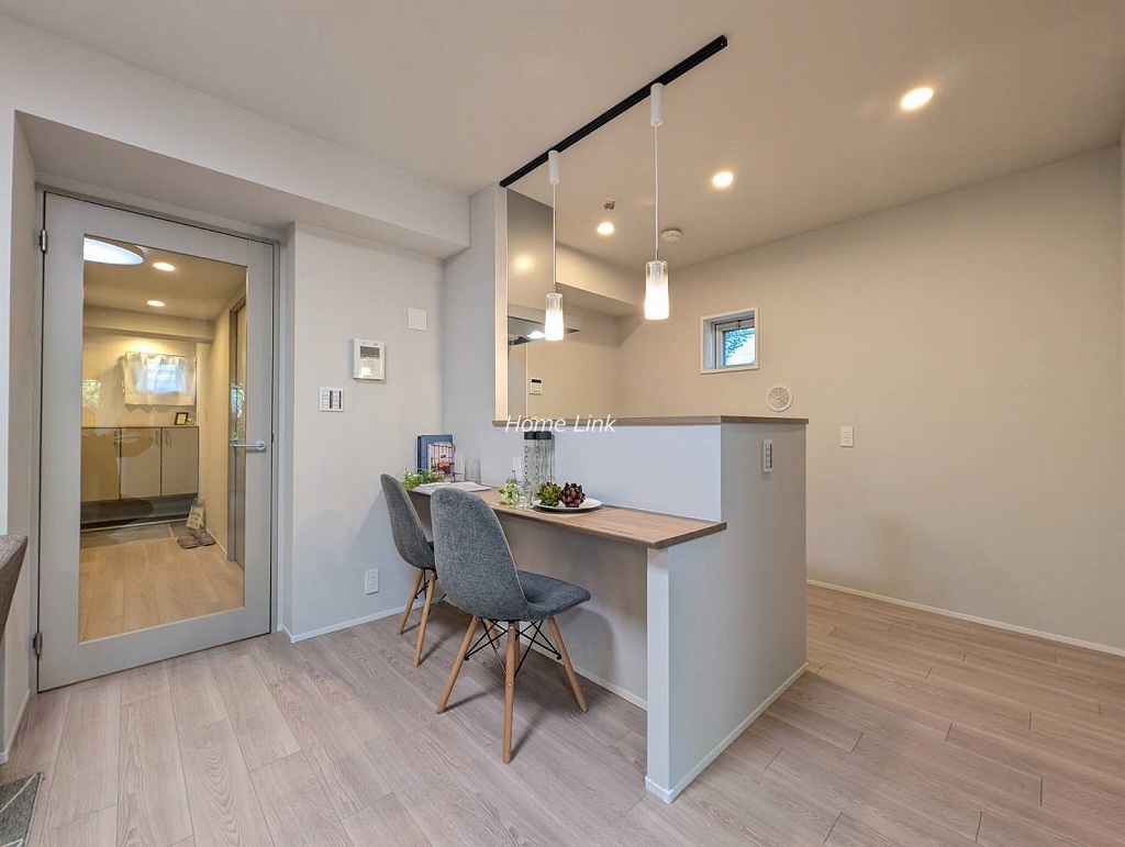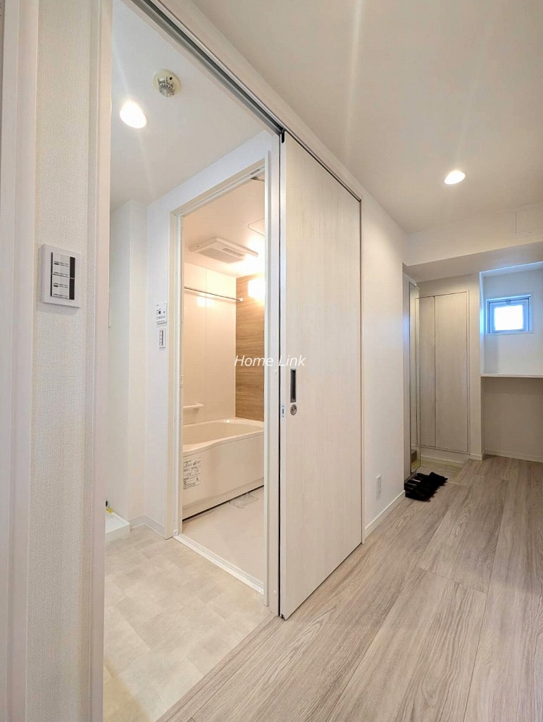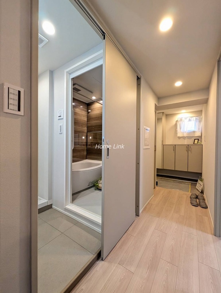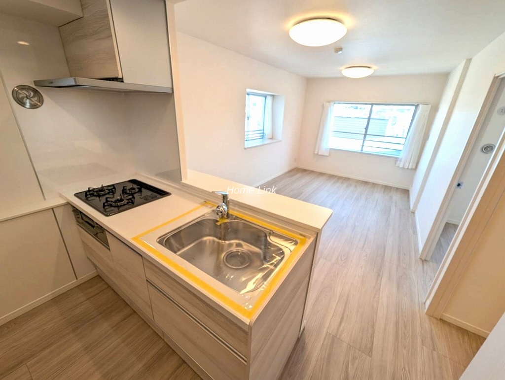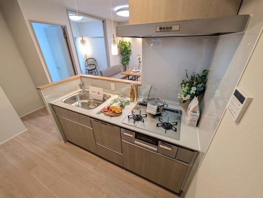 システムキッチン、ユニットバス、洗面台、トイレ、クロス、フローリング、建具、クッションフロア、下足入れ、洗濯水栓器具、防水パン、スイッチパネル、ダウンライト、照明器具、玄関人感センサー(令和7年12月完成)