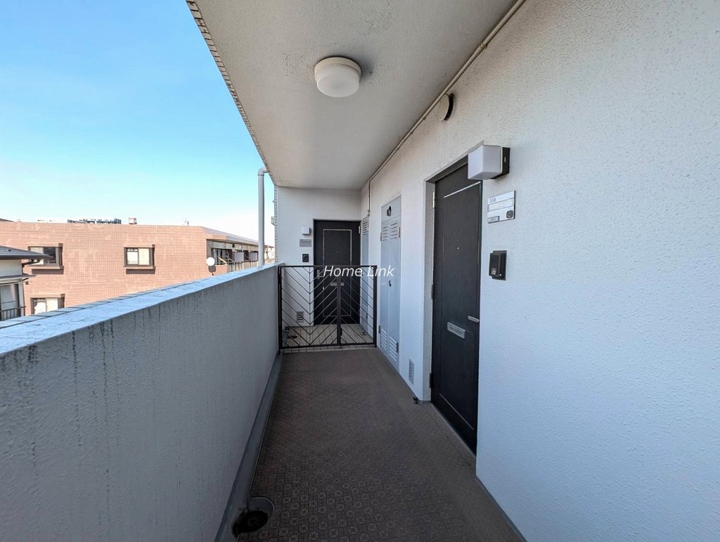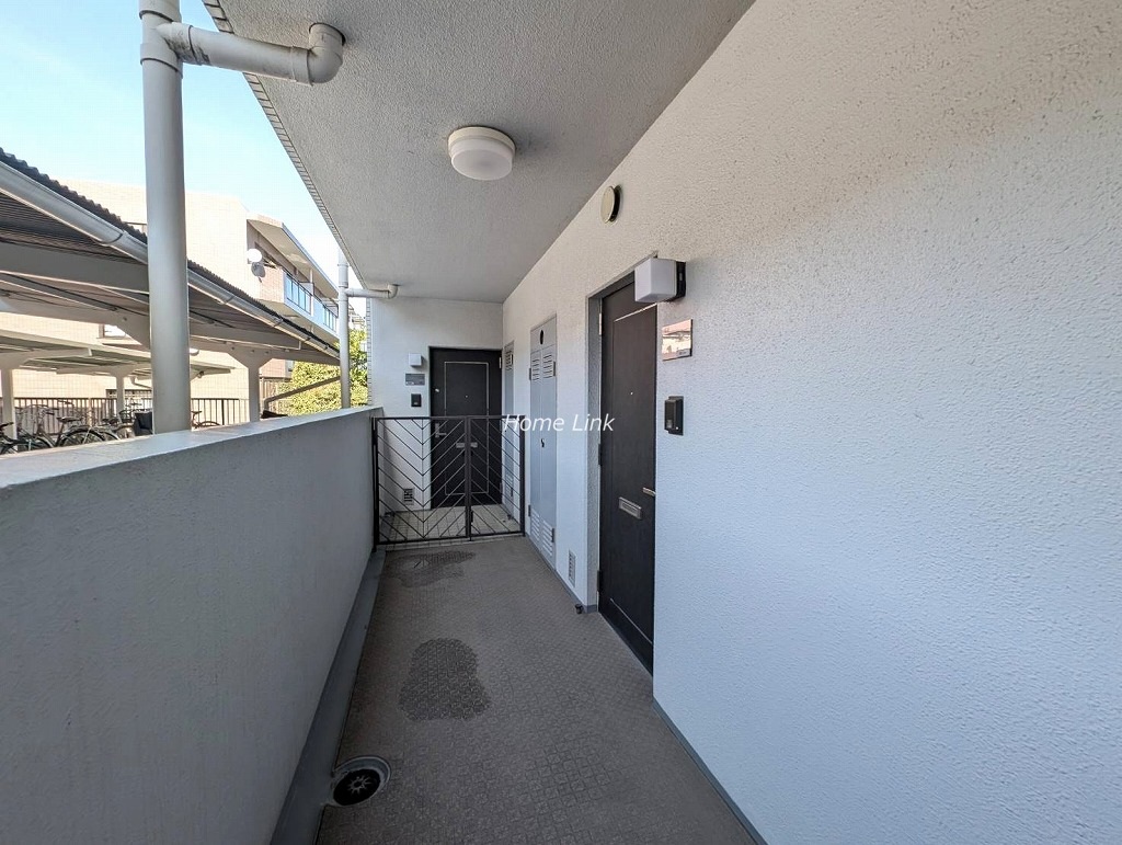 玄関前には、戸建てのような門扉付き玄関ポーチがプライバシーを守ります。