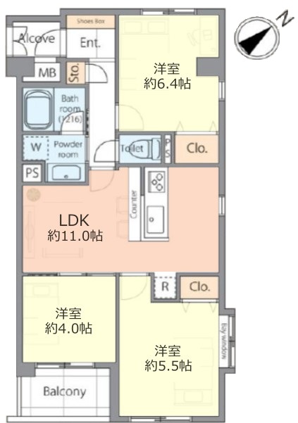 南東・北東・北西向き3方角住戸